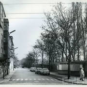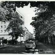 Ulica Sienkiewicza od ul. Kraszewskiego w kierunku ulic Prusa i Reja, z prawej ogrodzenie zajezdni tramwajowej
