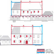 Jednym z najważniejszych odkryć dokonanych w 2014 roku jest fakt, że pierwsza gotycka kanonia była o jedną trzecią krótsza niż obecna. Budowla miała niewątpliwie pionowe szczyty zakończone trójkątnie lub schodkowo. Odkrywki wykonane w murach obwodowych wykazały ślady dziewięciu zamurowanych okien gotyckich oraz zamurowany otwór w gotyckim murze po stronie północnej na styku z murem obronnym. Ten ostatni okazał się wyjściem z budynku na pomost muru obronnego, a jego asymetryczna forma nie była w gotyku zjawiskiem odosobnionym. Ustalono, że największa rozbudowa kanonii miała miejsce w XVIII stuleciu – dostawiono wówczas północną część budynku. Świadczą o tym: szew w murach parteru, wątki ceglane, datowanie dendrochronologiczne i stropy nad parterem. W datowaniu gotyckiej kanonii, poza wieloma innymi odkryciami, kapitalne znaczenie miało kompleksowe rozpoznanie więźby dachowej. Stwierdzono, że na budynku stoją dwa niezależne ustroje konstrukcyjne. Świadczą o tym numery znaków ciesielskich wykonane w innych systemach w części południowej i północnej oraz brak dwóch skrajnych wiązarów szczytowych. Obie konstrukcje należą do typu więźb stolcowych o stolcach leżących. Więźby takie były popularne na terenie Polski w XVII i XVIII wieku, ale Friedrich Ostendorf uważał, że typ ten wykształcił się na terenie środkowych Niemiec już około 1400 roku. Konstrukcje na kanonii rozdzielone są ścianką działową z przewodami kominowymi. Więźba południowa ma obecnie 15 wiązarów (pierwotnie było ich 16), a więźba północna – sześć (pierwotnie siedem). Belki wiązarowe w południowej więźbie są profilowane, co oznacza, że stanowiły one jednocześnie eksponowany strop nad całym piętrem budynku. Więźba północna nie ma takich belek, lecz belki o przekroju prostokątnym. Przeprowadzona przez prof. Marka Krąpca laboratoryjna analiza dendrochronologiczna pobranych próbek drewna potwierdziła, że drewno użyte w więźbie południowej (gotyckiej) pochodzi z drzew sosny ściętych w 1476 roku, natomiast w więźbie północnej z drzew tego samego gatunku ściętych w latach 1749 i 1750. W świetle tych faktów, próbując datować budowę kanonii, jak we wszystkich dotychczasowych opracowaniach, na XVI wiek, trzeba zmierzyć się z wyjątkowo długim okresem sezonowania drewna. Tymczasem specjaliści są zgodni, że „w czasach średniowiecznych i wcześniejszych drewno na wiązania dachowe było używane od razu, albo prawie od razu po wyrębie” (Andrzej Zielski), ponieważ „w osłoniętych dachem dobrze przewietrzanych konstrukcjach drewno po wbudowaniu miało od razu doskonałe warunki do schnięcia” (Aleksander Konieczny). W przypadku kanonii wykluczyć należy wtórne użycie drewna do budowy więźby, jej oględziny nie wykazały bowiem jakichkolwiek śladów po poprzednich łączeniach elementów.