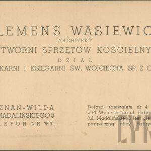 Do jego najważniejszych realizacji należą powojenna rekonstrukcja wnętrz fary i kaplica Wieczystej Adoracji, projekty ołtarzy głównych i bocznych do poznańskich kościołów: Świętej Trójcy na Dębcu, św. Michała Archanioła przy Stolarskiej, Zmartwychwstańców na Wildzie, Chrystusa Króla przy ul. Ostatniej i św. Jana Vianneya na Sołaczu, a także projekty ołtarzy w katedrze w Gorzowie Wielkopolskim oraz projekty wnętrz misyjnego seminarium Werbistów w Pieniężnie. Po śmierci żony w 1983 roku już nie projektował i zajął się porządkowaniem swojego imponującego archiwum. Klemens Wasiewicz zmarł 4 października 1989 r. Spoczywa w rodzinnym grobie na cmentarzu na Miłostowie.