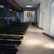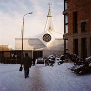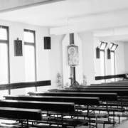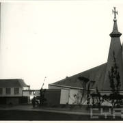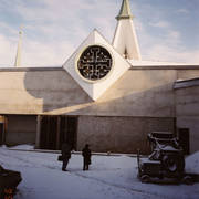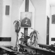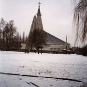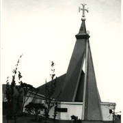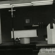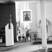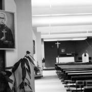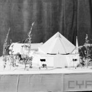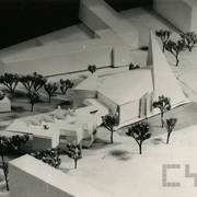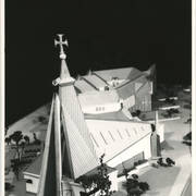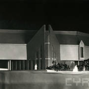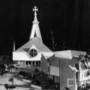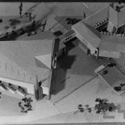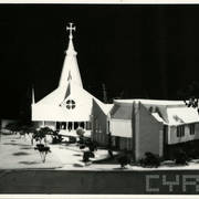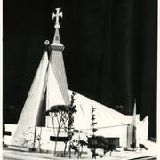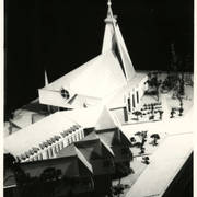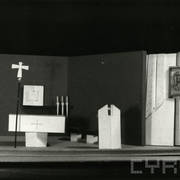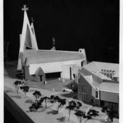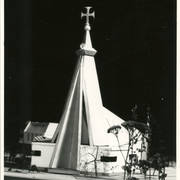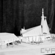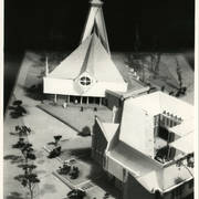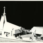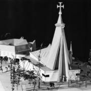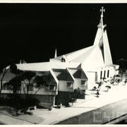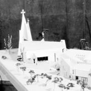 Makieta jednej z wersji projektu kościoła i zabudowań parafialnych parafii św. Jerzego na os. im. Karola Świerczewskiego (dzisiaj os. ks. Jerzego Popiełuszki)