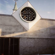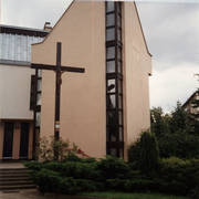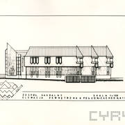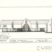 Projekt elewacji południowo-zachodniej zespołu sakralnego parafii św. Jerzego na os. im. Karola Świerczewskiego (dzisiaj os. ks. Jerzego Popiełuszki)02.1985