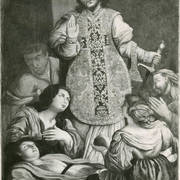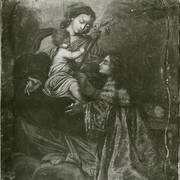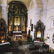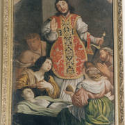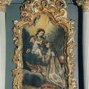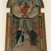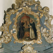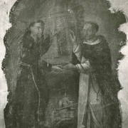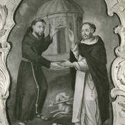 Obraz "Dysputa między św. Franciszkiem a św. Dominikiem" w zwieńczeniu ołtarza bocznego św. Kazimierza w poreformackim kościele św. Kazimierza (obecnie parafia polskokatolicka)2000
