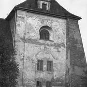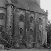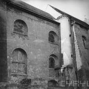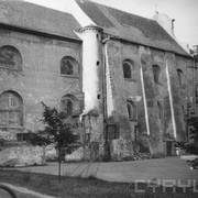 Północna elewacja poreformackiego kościoła św. Kazimierza ze skarpami wzmacniającymi (obecnie parafia polskokatolicka), z lewej część prezbiterialna06.07.1956
