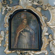 Obraz "Święty Stanisław Biskup" w zwieńczeniu ołtarza bocznego Matki Boskiej Częstochowskiej poreformackiego kościoła św. Kazimierza (obecnie parafia polskokatolicka)2000