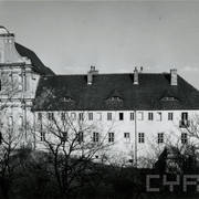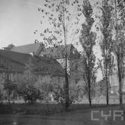 Elewacja wschodnia dawnego klasztoru Reformatów (obecnie Ośrodek Szkolno-Wychowawczy dla Dzieci Niesłyszących) i kościoła św. Kazimierza (obecnie parafia polskokatolicka)10.1957