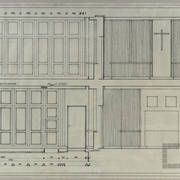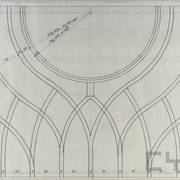 Projekty fundamentów i połaci dachowej krużganku kościoła Świętej Rodziny na os. Kopernika