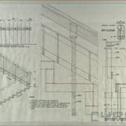 Projekty podestu klatki schodowej i balustrady przy oknie ośrodka parafialnego przy kościele Świętej Rodziny na os. Kopernika