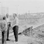 Profesor Włodzimierz Wojciechowski (drugi od lewej) na placu budowy kościoła Świętej Rodziny na os. Kopernika
