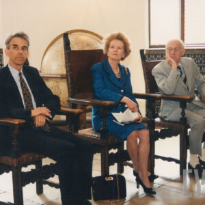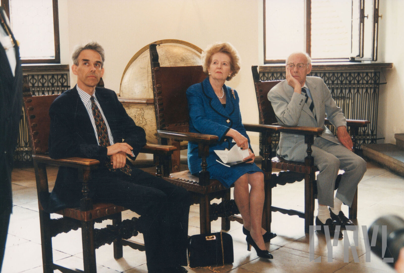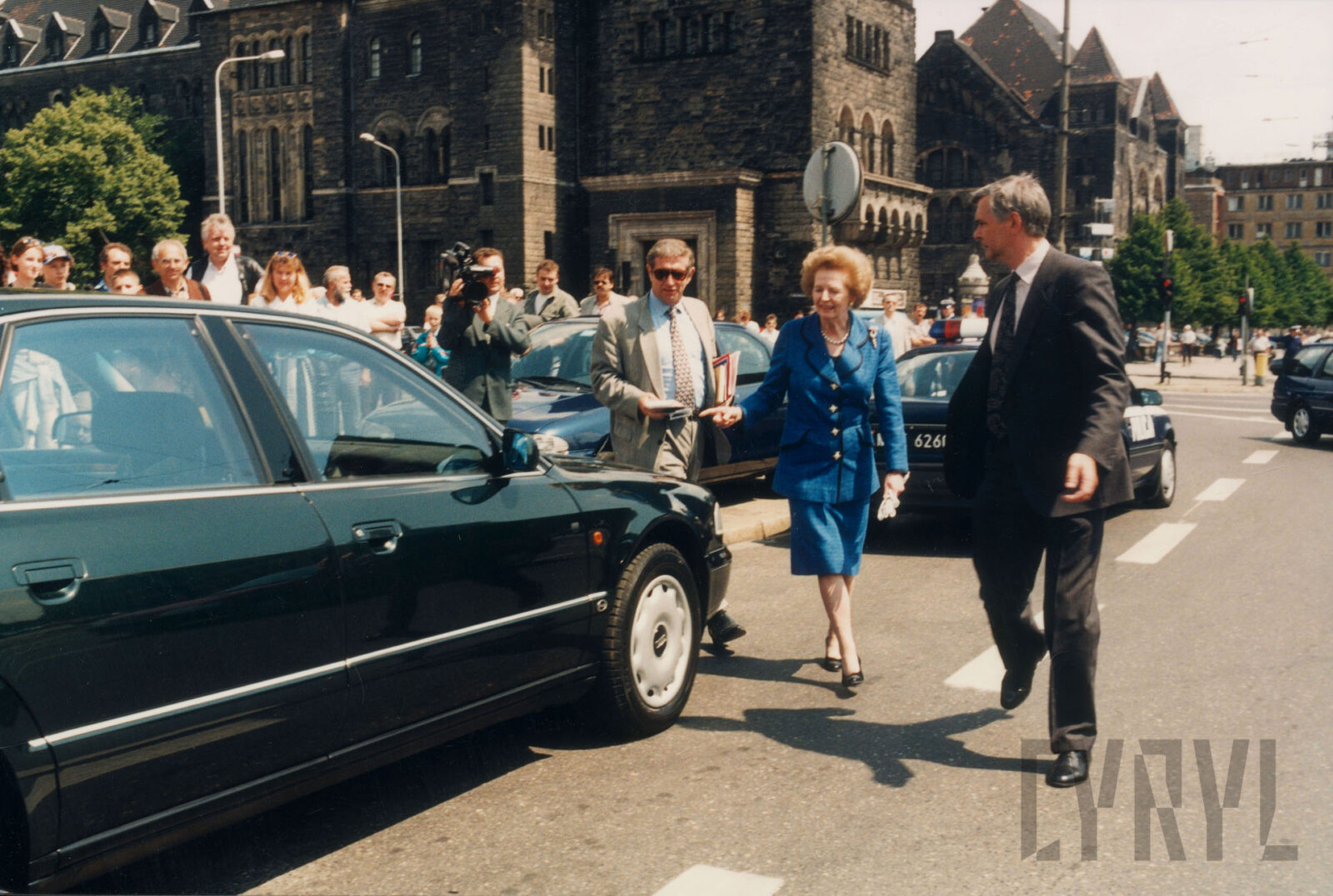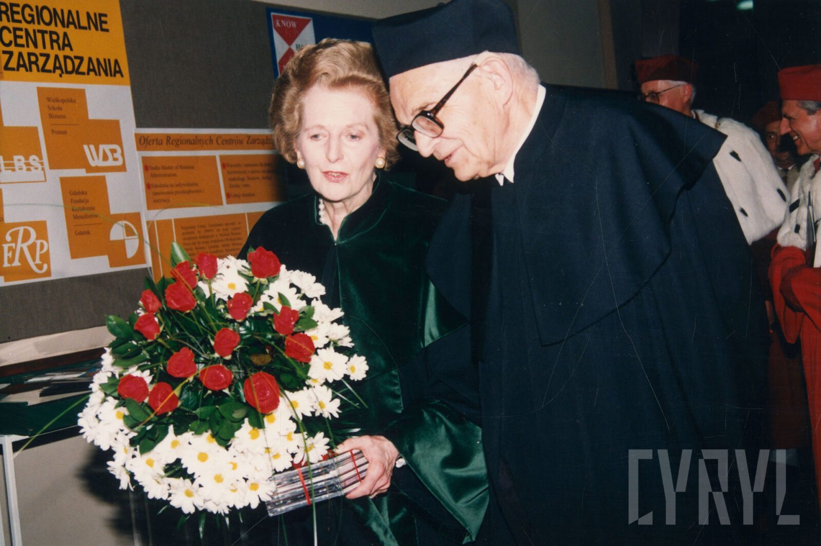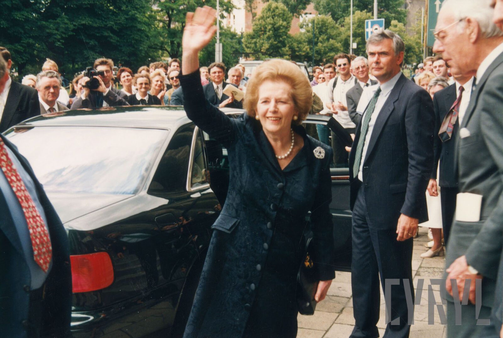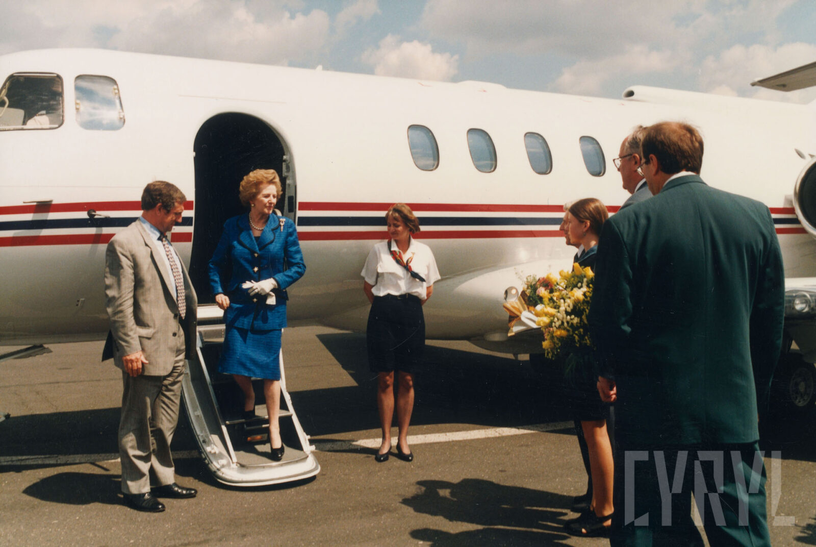 3 lipca 1996 roku na płycie lotniska Ławica z ponad dwudziestominutowym opóźnieniem wylądował samolot Hawker 800 z byłą premier Wielkiej Brytanii (w latach 1979-1990) i jedną z najwybitniejszych polityczek XX wieku Margaret lady Thatcher i jej mężem na pokładzie. Gości witali m.in. wojewoda poznański Włodzimierz Łęcki, prezydent Poznania Wojciech Szczęsny Kaczmarek i rektor Akademii Ekonomicznej w Poznaniu (dzisiaj Uniwersytet Ekonomiczny) prof. Bohdan Gruchman. Żelazna Dama, jak w latach 70. XX wieku nazywali ją Rosjanie, przybyła do Poznania z wizytą prywatną – miała odebrać honorowe obywatelstwo Poznania przyznane jej przez Radę Miasta 28 czerwca 1996 roku za szczególne zasługi w promowaniu wolnego rynku oraz doktorat honoris causa poznańskiej Akademii Ekonomicznej w uznaniu szczególnego wkładu w rozwój gospodarki rynkowej w Polsce.