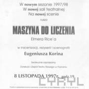 Prośba dyrektora technicznego Teatru Nowego Marka Matuszaka przesłana do Zakładów Obuwia Scenicznego w Krakowie w sprawie wykonania butów do spektaklu "Maszyna do liczenia"20.06.1997
