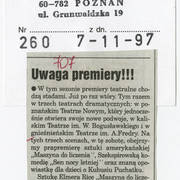 Prośba dyrektora Teatru Nowego Eugeniusza Korina przesłana do przedsiębiorstwa "Bukowianka" w sprawie wykonania koszul do spektaklu "Maszyna do liczenia"01.10.1997