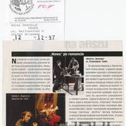 Prośba kierownika technicznego Teatru Nowego Marka Matuszaka przesłana do przedsiębiorstwa Euromatch w sprawie wykonania 100 opakowań zapałek do spektaklu "Maszyna do liczenia"1997