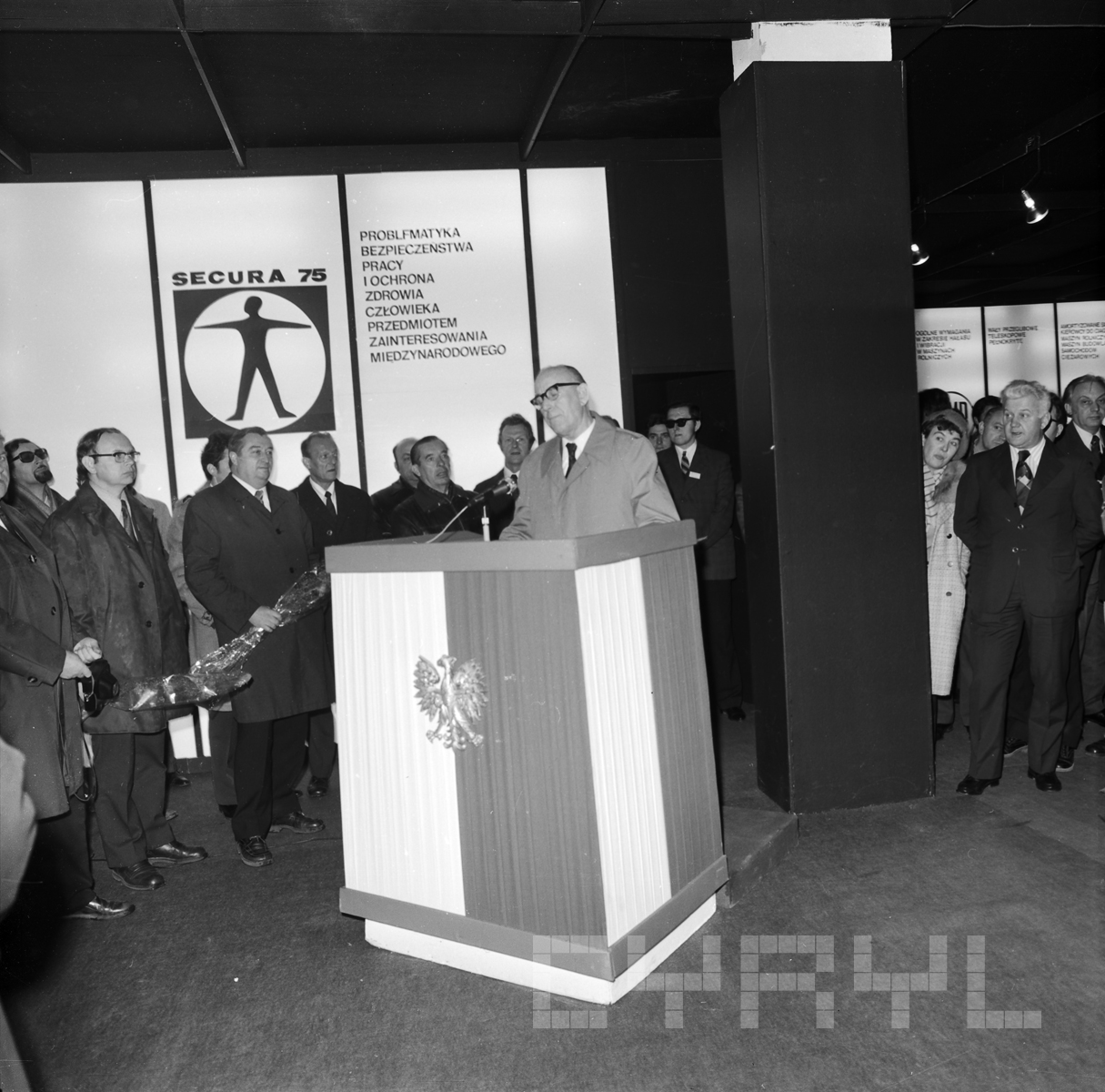 Międzynarodową wystawę odzieży ochronnej i roboczej, sprzętu ochrony osobistej oraz aparatury kontrolno-pomiarowej Secura 75 (ochrona człowieka w środowisku pracy) otwarto w pawilonie nr 20 Trwała od 21 do 25 kwietnia i wzięło w niej udział 18 państw. Polska zaprezentowała m.in. odzież roboczą dla różnych zwodów, odzież chroniącą przed wodą i promieniowaniem cieplnym, sprzęt do ochrony przed hałasem i szkodliwymi substancjami oraz materiały budowalne zwiększające higienę pracy. Ekspozycję zwiedziło ok. 60 tys. osób, m.in. wycieczki ze Związku Radzieckiego i Jugosławii. Wystawie towarzyszyło trzydniowe sympozjum naukowe poświęcone ochronie człowieka w środowisku pracy. Imprezę zakończyła konferencja prasowa, w której wziął udział wiceminister pracy, płac i spraw socjalnych Wiktor Kłosiewicz.