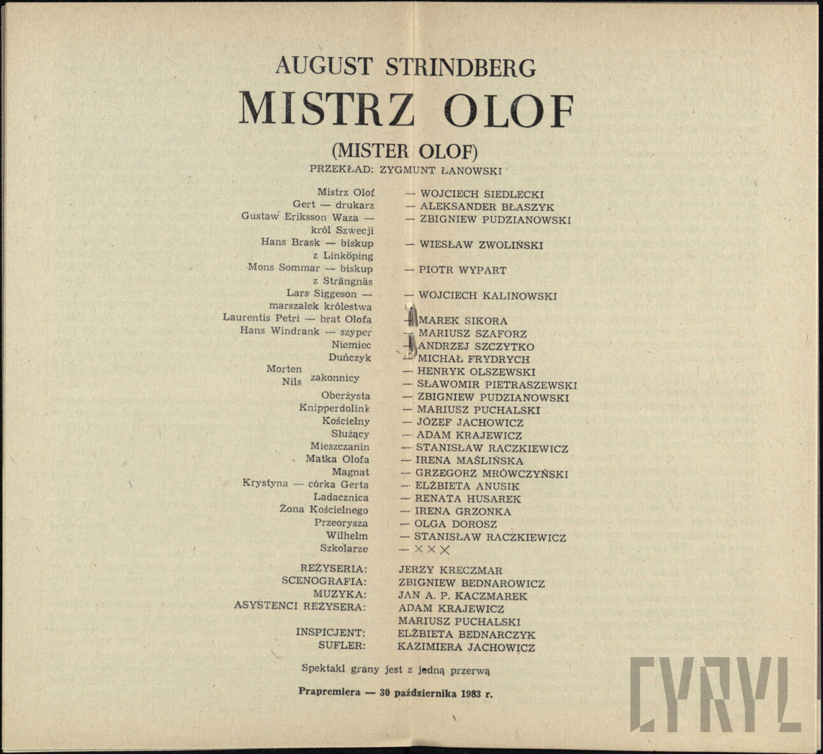 Mistrz Olof | 1983 | Teatr Polski w Poznaniu