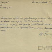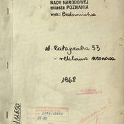Okładka teczki z dokumentacją dotyczącą modernizacji witryny zakładu krawieckiego przy ul. Ratajczaka 33