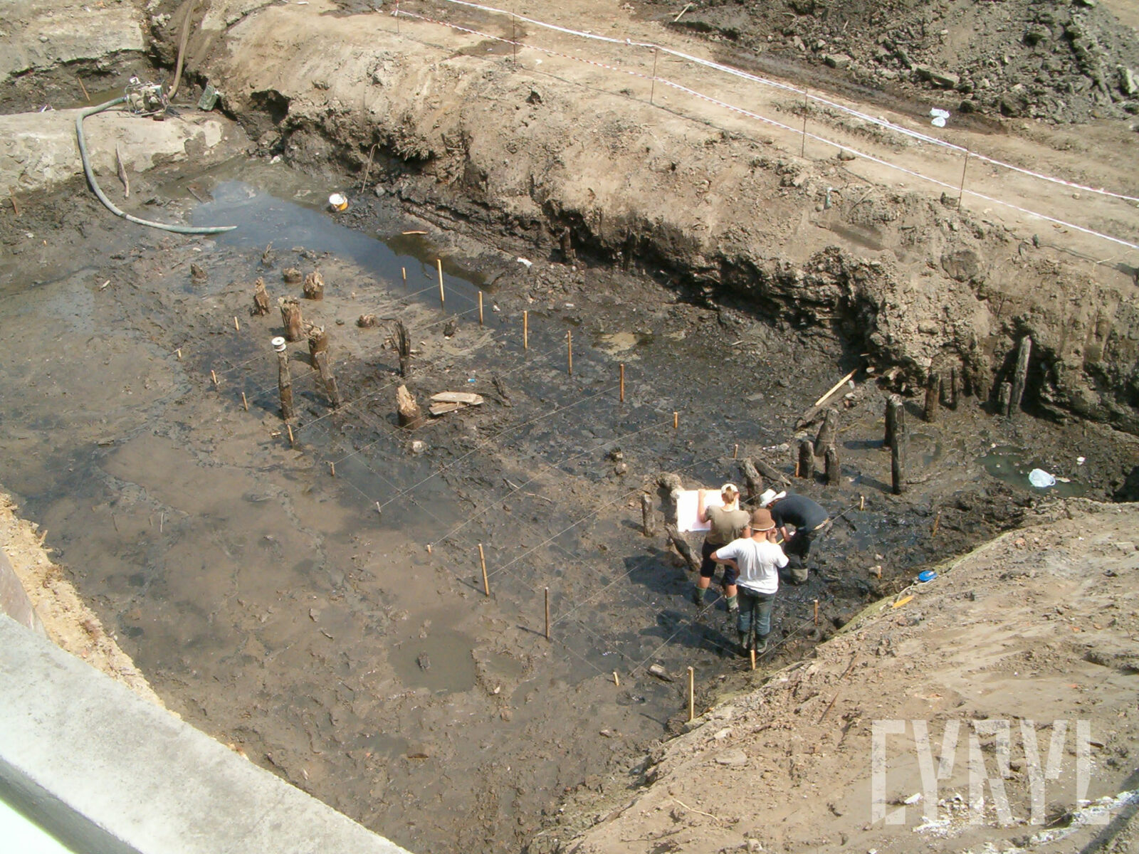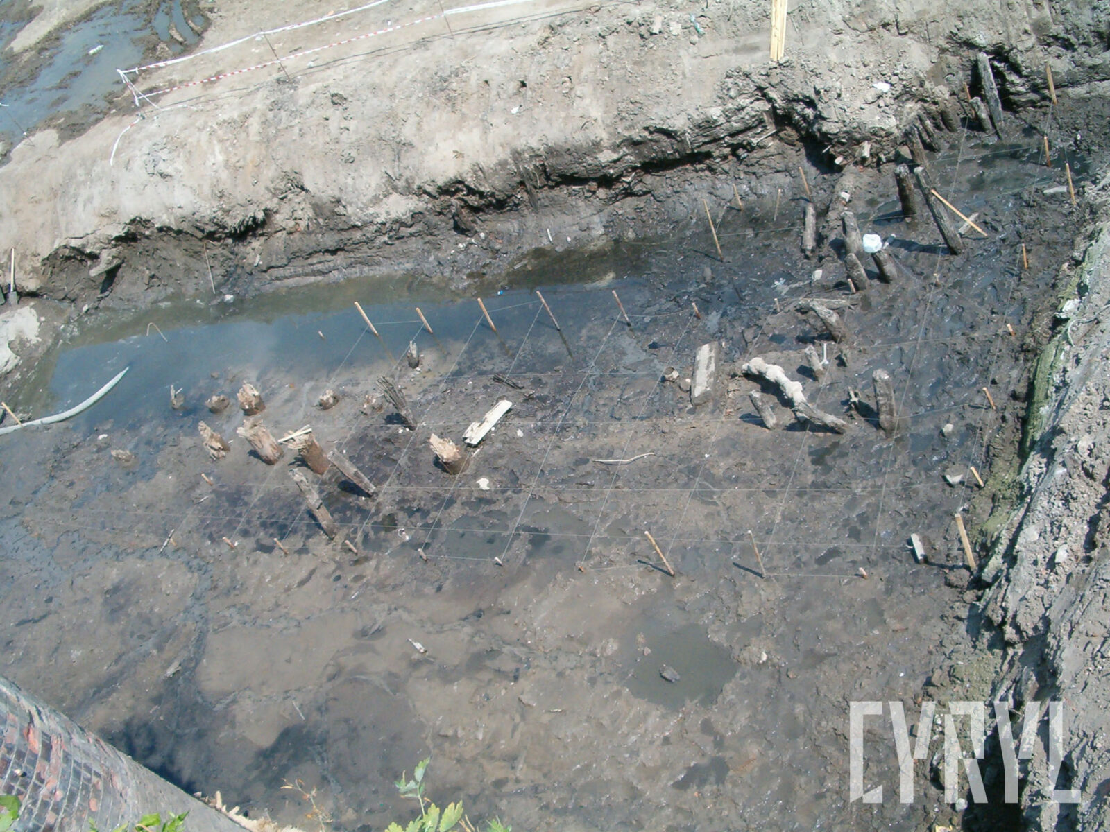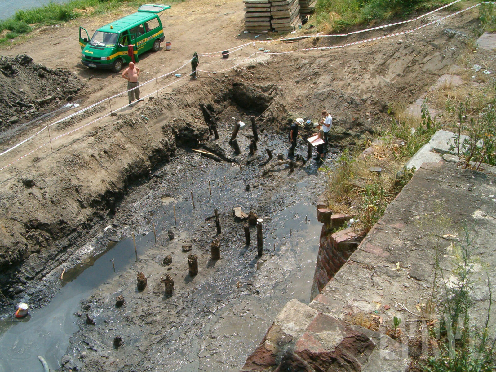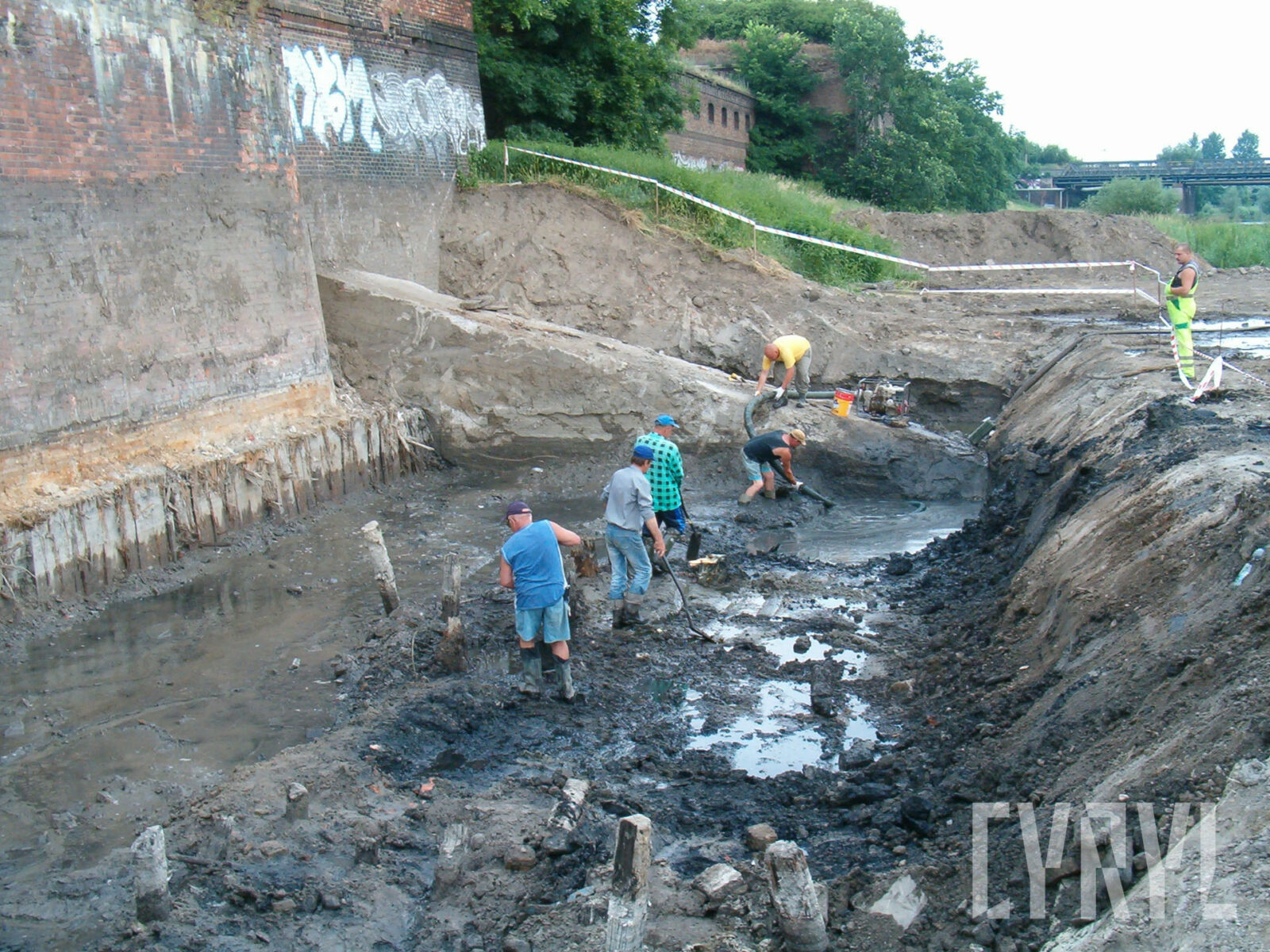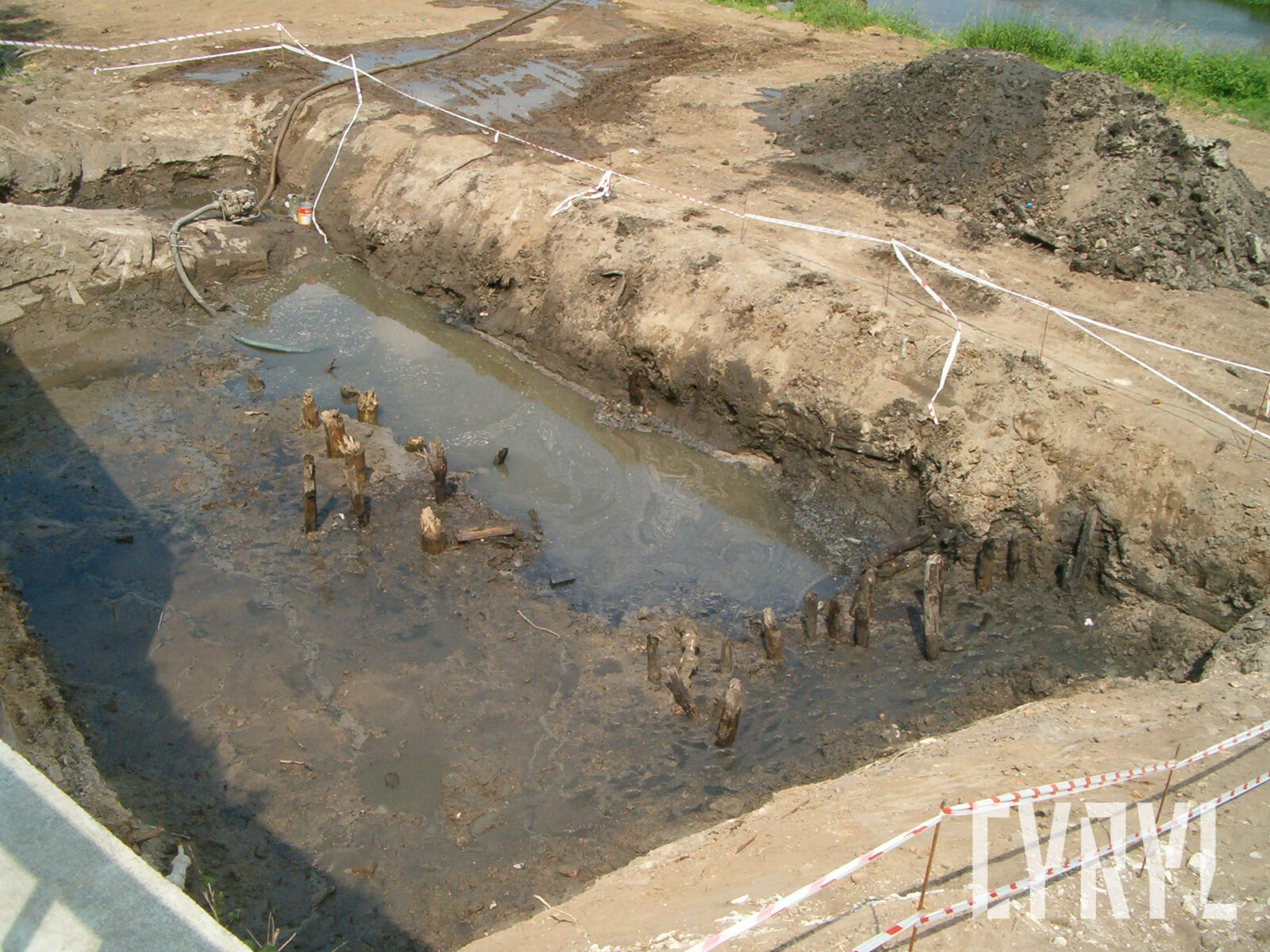W czasie prac archeologicznych w wykopie od strony Śródki odkryto pozostałości osadnictwa od X do XIX wieku, w tym relikty średniowiecznej zabudowy z około połowy XV wieku, a więc z czasów lokacji Ostrówka (1444), oraz kilka pali dębowych mostu wzniesionego w tym samym czasie. W wykopie od strony Ostrowa Tumskiego natrafiono na drewniane elementy konstrukcyjne kilku mostów, przede wszystkim najstarszego poznańskiego mostu wzniesionego w latach 70. X wieku w czasie wielkich modernizacji prowadzonych przez Mieszka I w związku z rozbudową umocnień grodowych. W ciągu około 50 lat od powstania tego mostu kilkakrotnie dokonywano jego napraw. Wśród odkrytych wczesnośredniowiecznych reliktów drewnianej przeprawy znajdują się przede wszystkim dębowe pale (ponad 30 sztuk), a także elementy tworzące poziomą część konstrukcji (fragmenty belek legarowych, relikty nawierzchni mostu). Natrafiono także na kilkanaście pali sosnowych wbitych w podłoże przy użyciu kafara, które tworzyły element nośny konstrukcji mostu wzniesionego w 1939 lub 1940 roku po wkroczeniu Niemców do Poznania w miejscu zniszczonego przez wycofującą się armię polską mostu z 1913 roku.