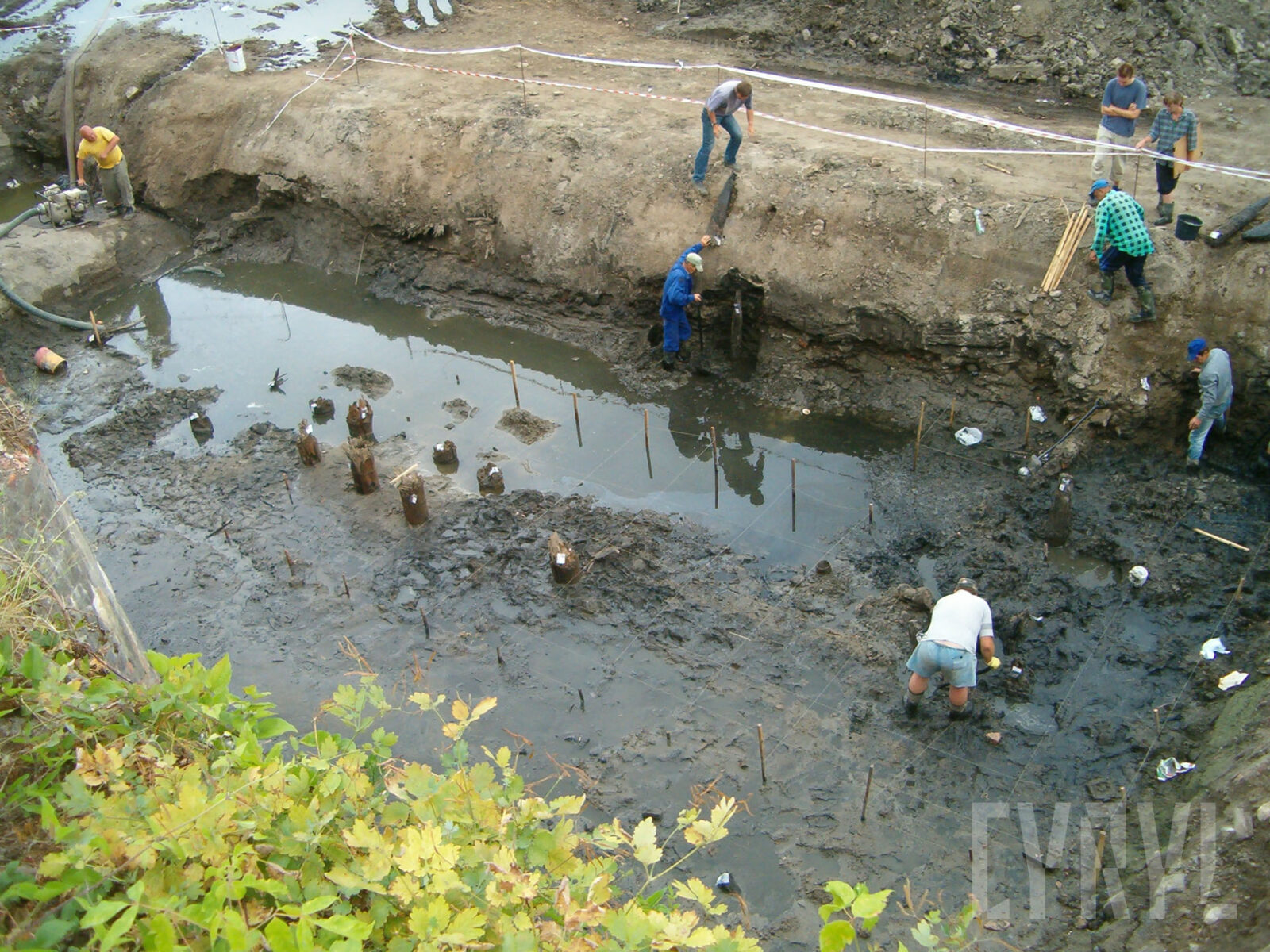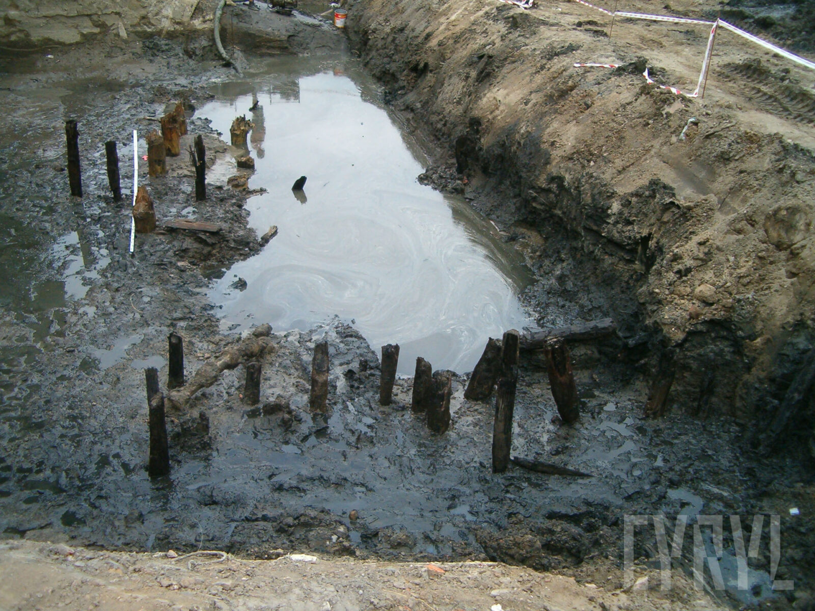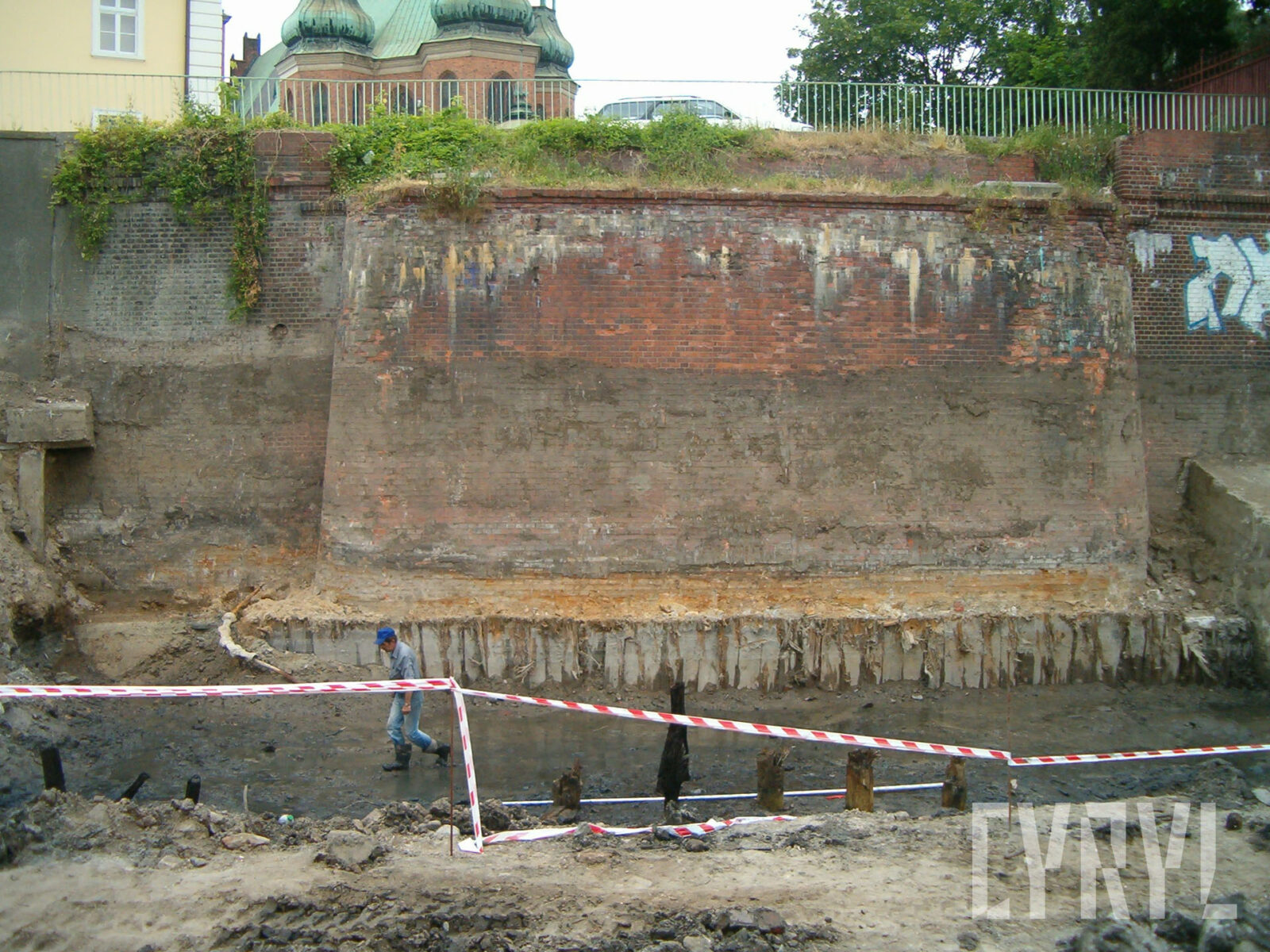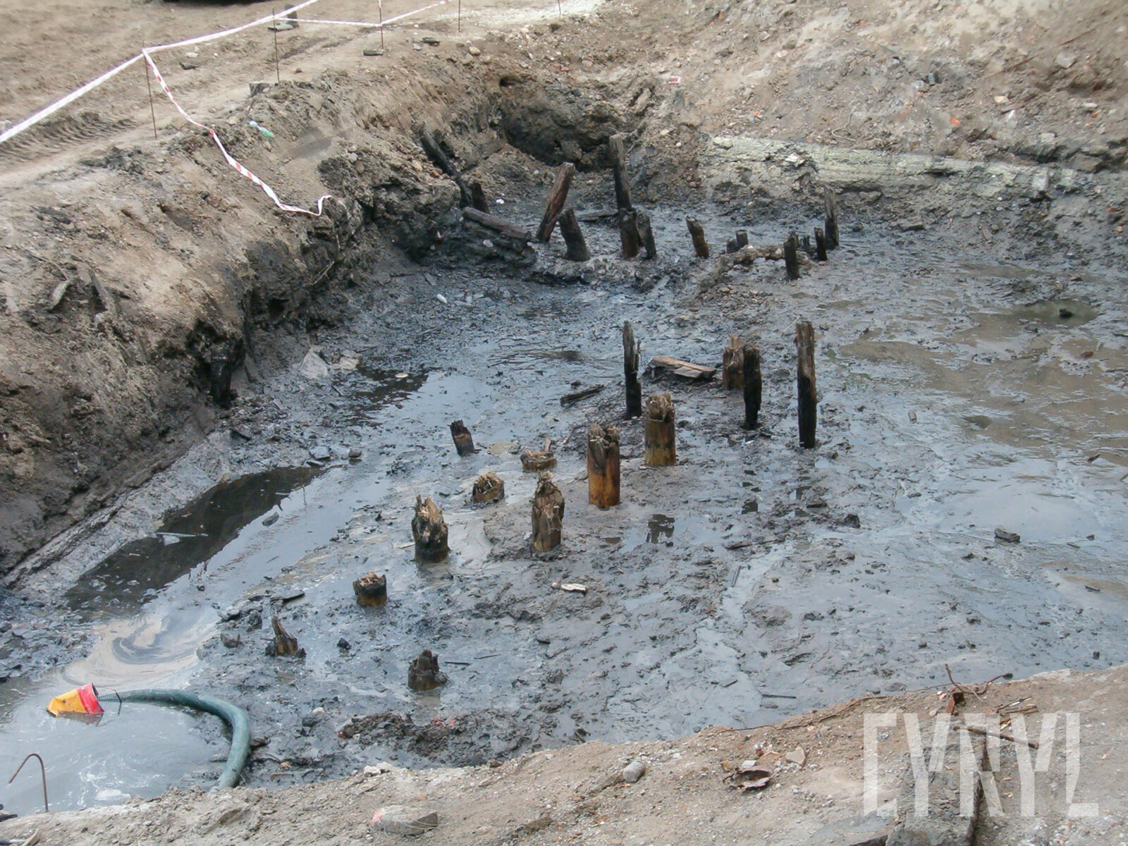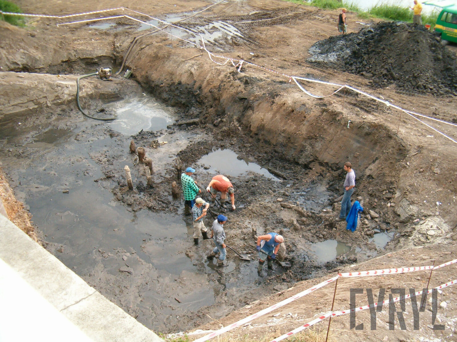 W czasie prac archeologicznych w wykopie od strony Śródki odkryto pozostałości osadnictwa od X do XIX wieku, w tym relikty średniowiecznej zabudowy z około połowy XV wieku, a więc z czasów lokacji Ostrówka (1444), oraz kilka pali dębowych mostu wzniesionego w tym samym czasie. W wykopie od strony Ostrowa Tumskiego natrafiono na drewniane elementy konstrukcyjne kilku mostów, przede wszystkim najstarszego poznańskiego mostu wzniesionego w latach 70. X wieku w czasie wielkich modernizacji prowadzonych przez Mieszka I w związku z rozbudową umocnień grodowych. W ciągu około 50 lat od powstania tego mostu kilkakrotnie dokonywano jego napraw. Wśród odkrytych wczesnośredniowiecznych reliktów drewnianej przeprawy znajdują się przede wszystkim dębowe pale (ponad 30 sztuk), a także elementy tworzące poziomą część konstrukcji (fragmenty belek legarowych, relikty nawierzchni mostu). Natrafiono także na kilkanaście pali sosnowych wbitych w podłoże przy użyciu kafara, które tworzyły element nośny konstrukcji mostu wzniesionego w 1939 lub 1940 roku po wkroczeniu Niemców do Poznania w miejscu zniszczonego przez wycofującą się armię polską mostu z 1913 roku.