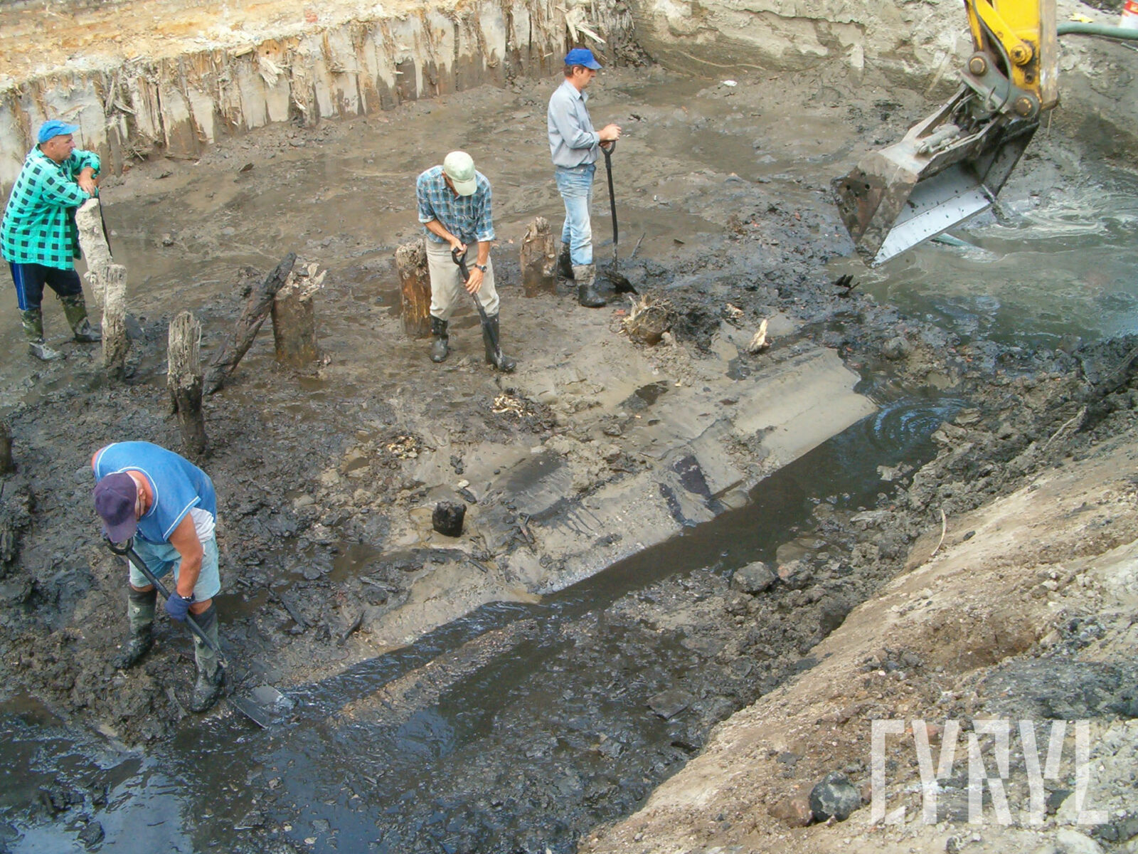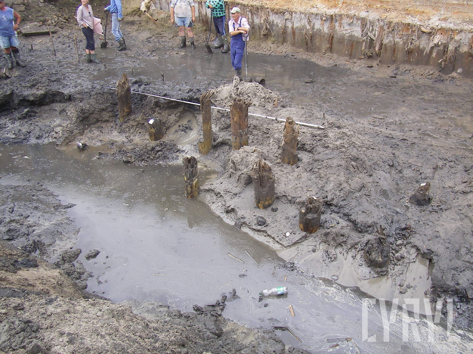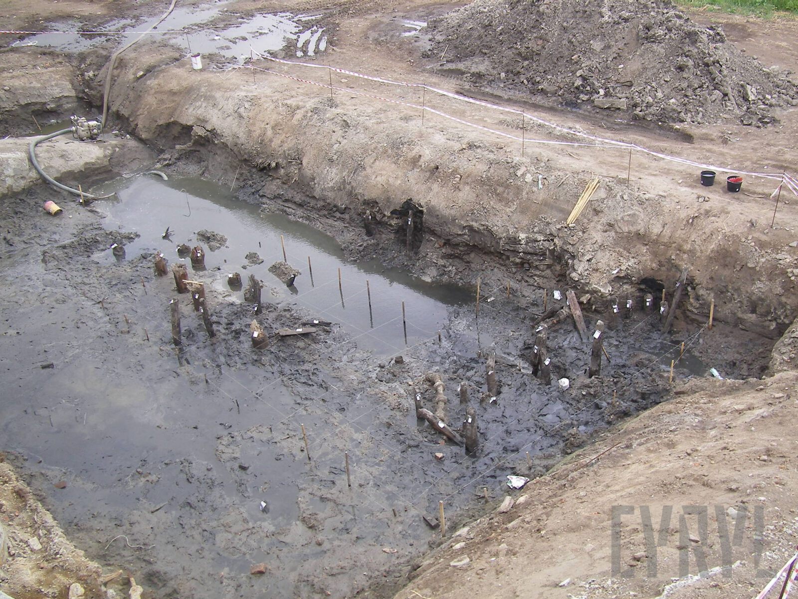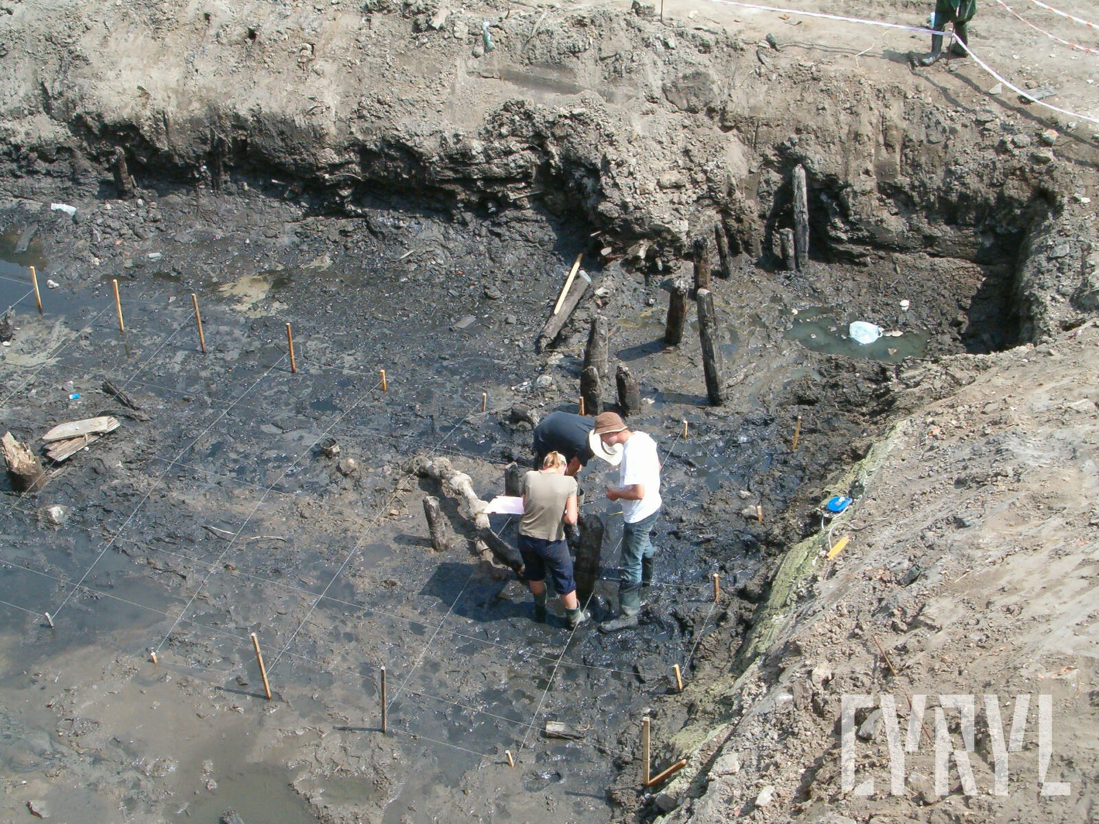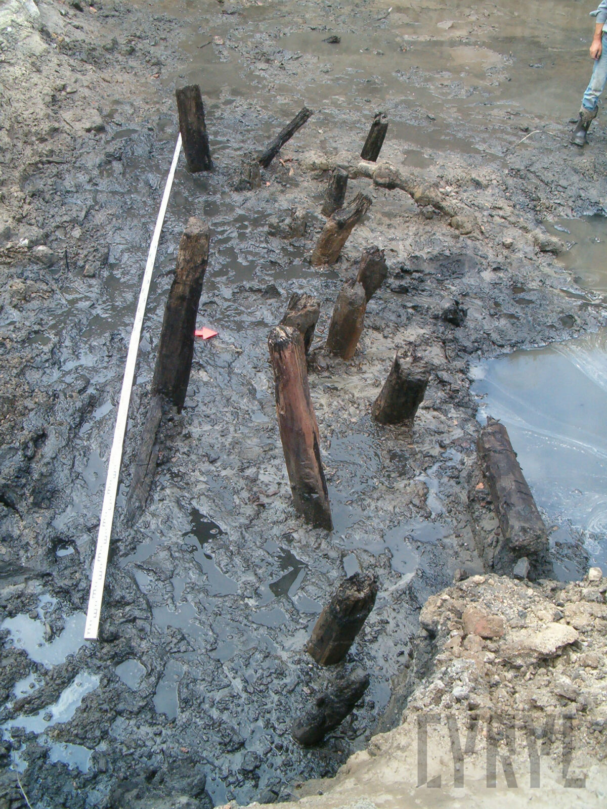 W czasie prac archeologicznych w wykopie od strony Śródki odkryto pozostałości osadnictwa od X do XIX wieku, w tym relikty średniowiecznej zabudowy z około połowy XV wieku, a więc z czasów lokacji Ostrówka (1444), oraz kilka pali dębowych mostu wzniesionego w tym samym czasie. W wykopie od strony Ostrowa Tumskiego natrafiono na drewniane elementy konstrukcyjne kilku mostów, przede wszystkim najstarszego poznańskiego mostu wzniesionego w latach 70. X wieku w czasie wielkich modernizacji prowadzonych przez Mieszka I w związku z rozbudową umocnień grodowych. W ciągu około 50 lat od powstania tego mostu kilkakrotnie dokonywano jego napraw. Wśród odkrytych wczesnośredniowiecznych reliktów drewnianej przeprawy znajdują się przede wszystkim dębowe pale (ponad 30 sztuk), a także elementy tworzące poziomą część konstrukcji (fragmenty belek legarowych, relikty nawierzchni mostu). Natrafiono także na kilkanaście pali sosnowych wbitych w podłoże przy użyciu kafara, które tworzyły element nośny konstrukcji mostu wzniesionego w 1939 lub 1940 roku po wkroczeniu Niemców do Poznania w miejscu zniszczonego przez wycofującą się armię polską mostu z 1913 roku.