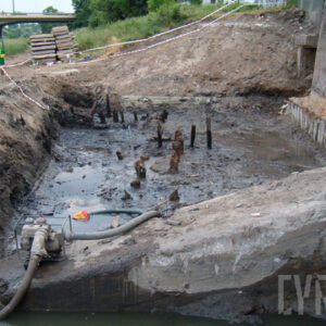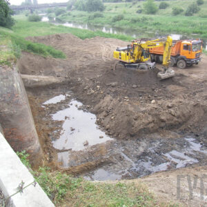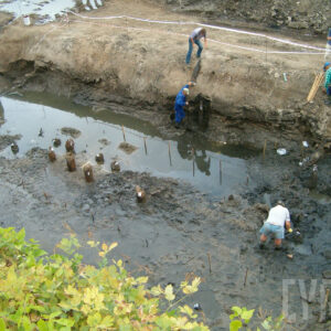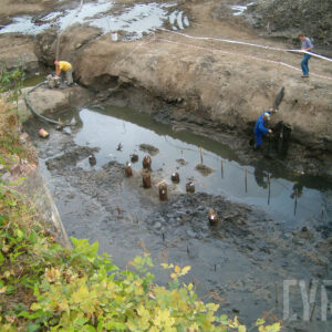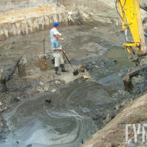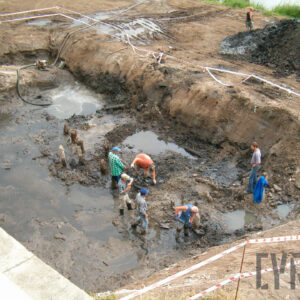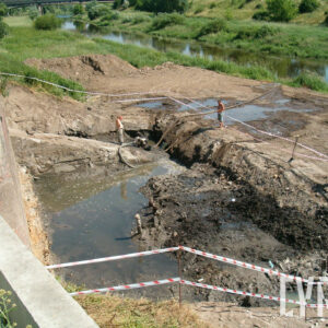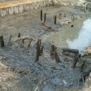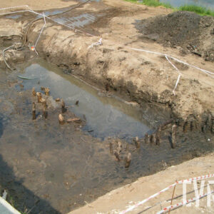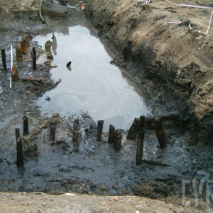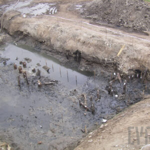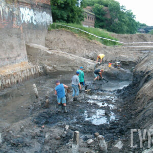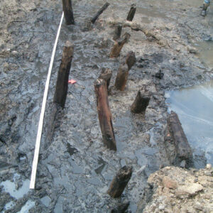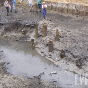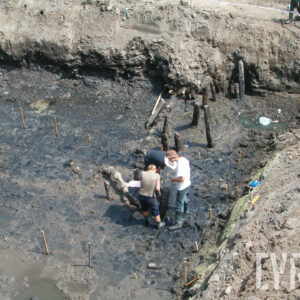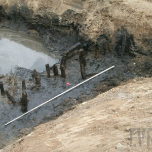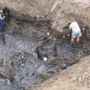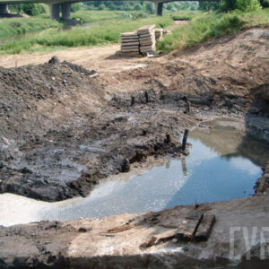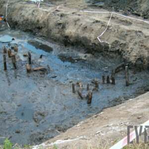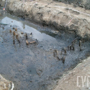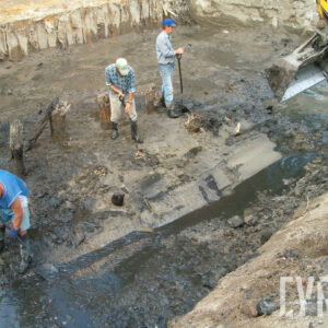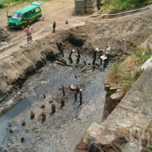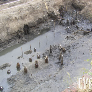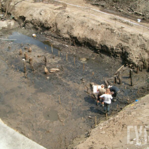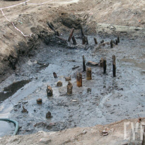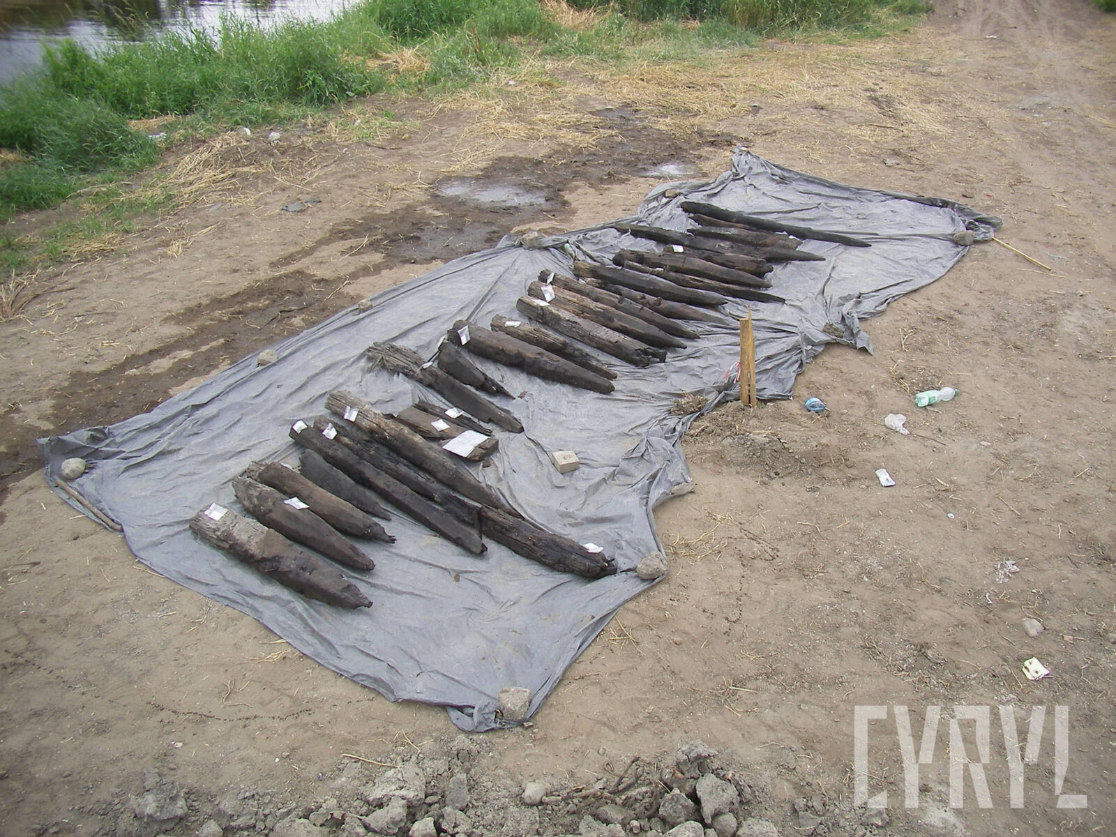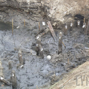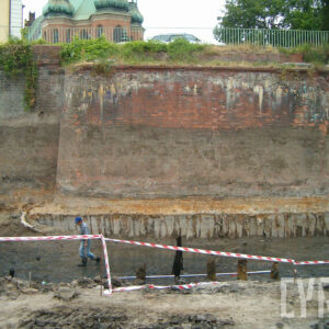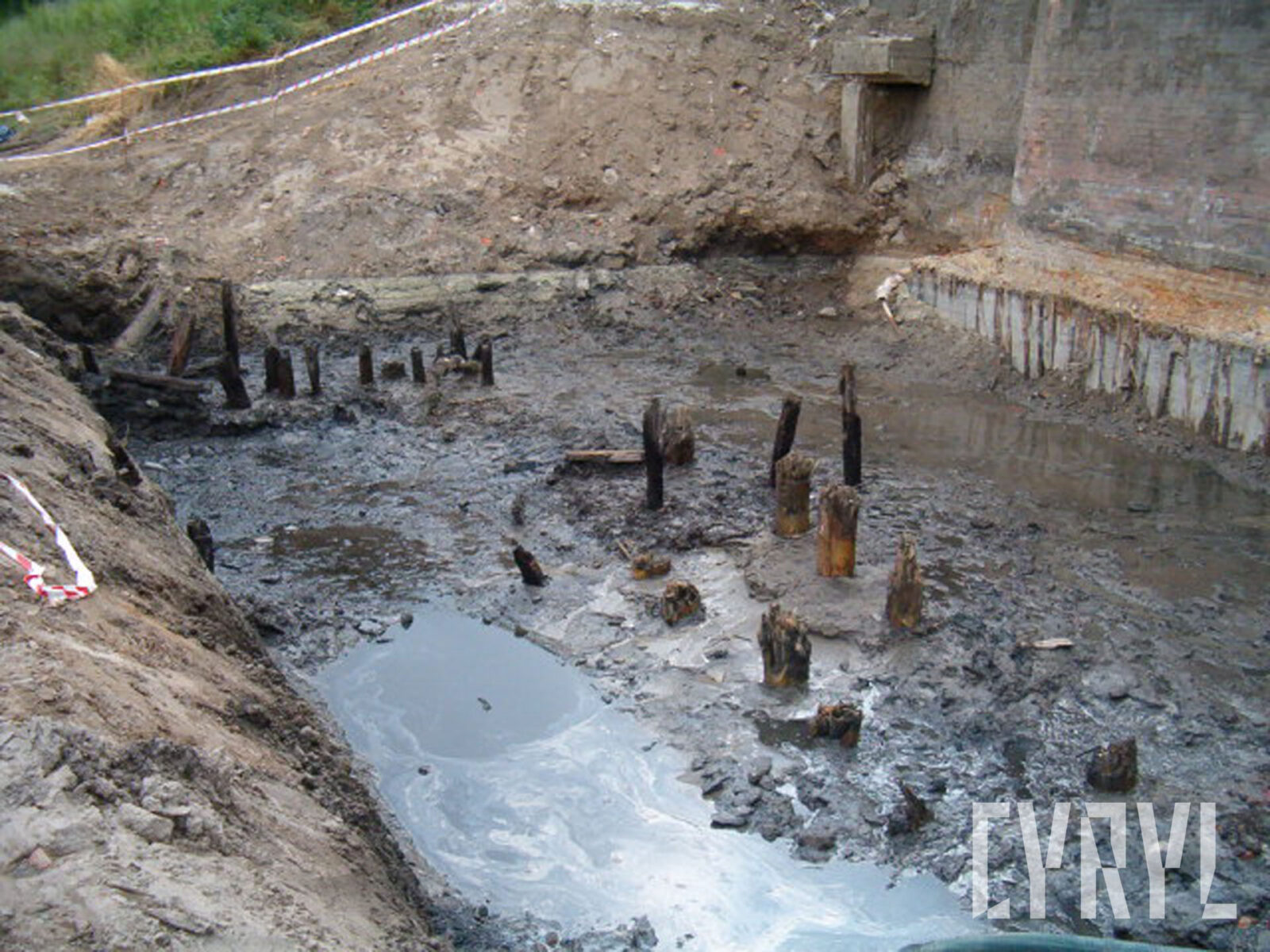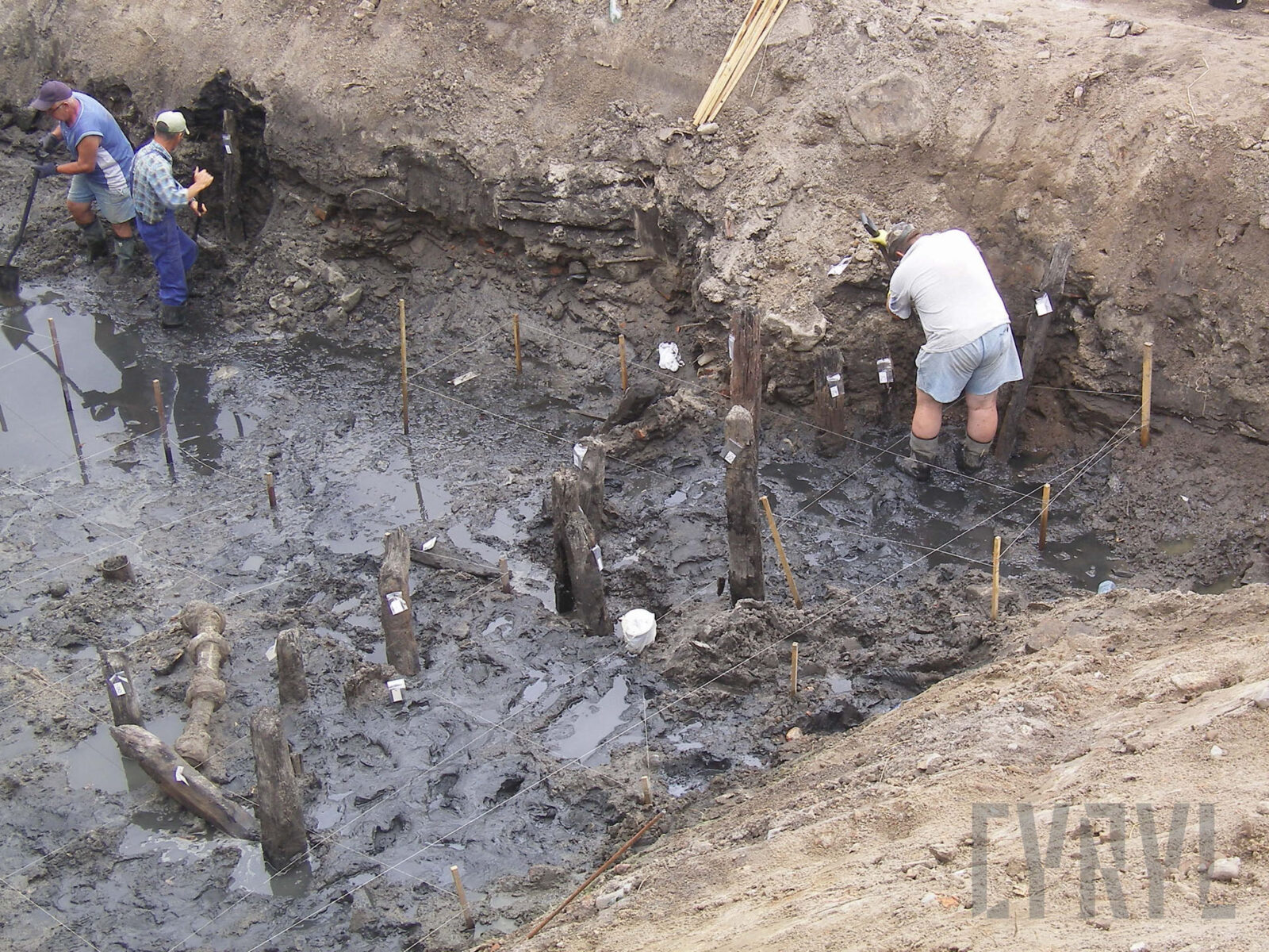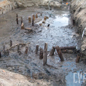 W czasie prac archeologicznych w wykopie od strony Śródki odkryto pozostałości osadnictwa od X do XIX wieku, w tym relikty średniowiecznej zabudowy z około połowy XV wieku, a więc z czasów lokacji Ostrówka (1444), oraz kilka pali dębowych mostu wzniesionego w tym samym czasie. W wykopie od strony Ostrowa Tumskiego natrafiono na drewniane elementy konstrukcyjne kilku mostów, przede wszystkim najstarszego poznańskiego mostu wzniesionego w latach 70. X wieku w czasie wielkich modernizacji prowadzonych przez Mieszka I w związku z rozbudową umocnień grodowych. W ciągu około 50 lat od powstania tego mostu kilkakrotnie dokonywano jego napraw. Wśród odkrytych wczesnośredniowiecznych reliktów drewnianej przeprawy znajdują się przede wszystkim dębowe pale (ponad 30 sztuk), a także elementy tworzące poziomą część konstrukcji (fragmenty belek legarowych, relikty nawierzchni mostu). Natrafiono także na kilkanaście pali sosnowych wbitych w podłoże przy użyciu kafara, które tworzyły element nośny konstrukcji mostu wzniesionego w 1939 lub 1940 roku po wkroczeniu Niemców do Poznania w miejscu zniszczonego przez wycofującą się armię polską mostu z 1913 roku.