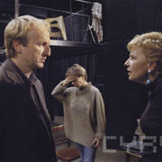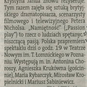 Mirosław Kropielnciki (Jim), Agnieszka Krukówna (Kate) i Mariusz Sabiniewicz (James) w spektaklu "Namiętność" Petera Nicholsa w reżyserii Krystyny Jandy2005