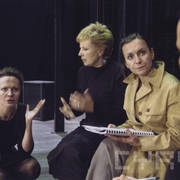 Maria Rybarczyk (Agnes), Krystyna Janda i Antonina Choroszy (Eleanor) w czasie próby do spektaklu "Namiętność" Petera Nicholsa w reżyserii Krystyny Jandy