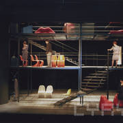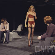 Antonina Choroszy (Eleanor), Daniela Popławska (Nell), Maria Rybarczyk (Agnes), Mariusz Sabiniewicz (James) w czasie próby do spektaklu "Namiętność" Petera Nicholsa w reżyserii Krystyny Jandy