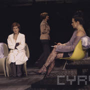 Daniela Popławska (Nell), Antonina Choroszy (Eleanor) i Małgorzata Łodej (Psychiatra) w spektaklu "Namiętność" Petera Nicholsa w reżyserii Krystyny Jandy2005