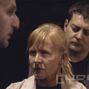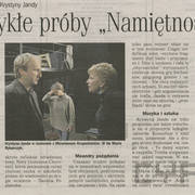 Mariusz Sabiniewicz (James), Mirosław Kropielnciki (Jim), Agnieszka Krukówna (Kate) w czasie próby do spektaklu "Namiętność" Petera Nicholsa w reżyserii Krystyny Jandy