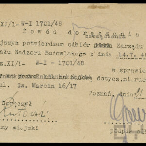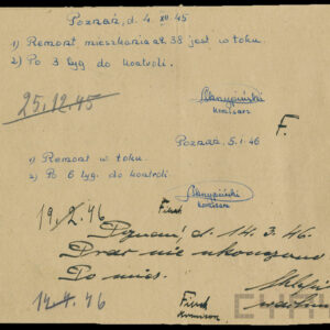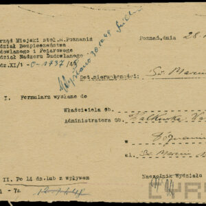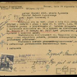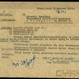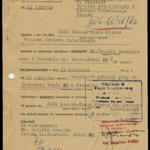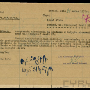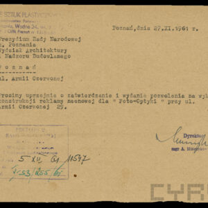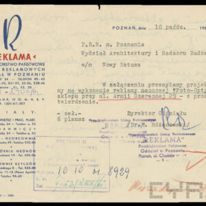 Dokumentacja związana z powojenną odbudową domu przy ul. Czerwonej Armii 29 (dzisiaj Święty Marcin) dotyczy przede wszystkim remontu zniszczonych mieszkań i adaptacji poddasza na cele mieszkalne, w niewielkim tylko stopniu zawiera materiały związane z projektem i montażem na elewacji budynku neonu zakładu Foto-Optyki. Te ostatnie dokumenty wskazują, że autorem projektu i osobą nadzorującą wykonanie i montaż konstrukcji był światowej sławy fotograf i malarz, urodzony w 1920 roku w Poznaniu inżynier, absolwent Politechniki Poznańskiej Bronisław Schlabs (w latach 50. i na początku lat 60. podpisywał się spolszczoną wersją nazwiska Szlabs). Początkowo tworzył w konwencji socrealizmu. W 1957 roku z Jerzym Lewczyńskim i Zdzisławem Beksińskim zawiązał nieformalną grupę fotograficzną i zaczął tworzyć prace abstrakcyjne z użyciem negatywów przetworzonych przez cięcie, drapanie i wklejanie fragmentów błon filmowych czy elementów ze szkła, a także kompozycje malowane na folii celuloidowej. Pod koniec lat 80. XX wieku wrócił do malarstwa, łącząc fotografię z techniką olejną. Zmarł w 2009 roku. Dzisiaj jego prace znajdują się w najbardziej prestiżowych galeriach świata, w MOMA w Nowym Jorku, Muzeum im. Puszkina w Moskwie, Folkwang Museum w Essen, Muzeach Narodowych w Pradze, Wrocławiu, Warszawie i Poznaniu oraz w Muzeum Sztuki w Łodzi. W niepozornej zdawałoby się dokumentacji odbudowy domu przy Świętym Marcinie znalazł się wykonany przez niego projekt neonu, rysunki konstrukcyjne, wykonane przez Schlabsa obliczenia statyczne i zaświadczenie o pełnieniu przez niego nadzoru nad montażem reklamy.