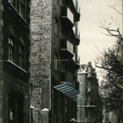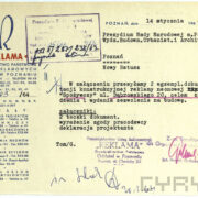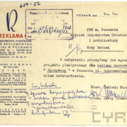 W 1961 roku wydano pozwolenie na budowę pięciokondygnacyjnego domu mieszkalnego na parceli przy ul. Dąbrowskiego 20/22. Wcześniej teren ten dzierżawił właściciel Składu Kafli Marian Smektała, który pobudował na działce prowizoryczną, drewnianą szopę z przeznaczeniem na magazyn materiałów budowlanych. O tę szopę toczył boje z urzędnikami, którzy ostatecznie nakazali mu jej rozbiórkę. Podobne boje Smektała toczył o witrynę reklamującą skład, która zamierzał umieścić w drewnianym parkanie otaczającym posesję. Sprawa szopy, płotu i gabloty została naturalnie rozwiązania z chwilą otrzymania przez Wojewódzkie Biuro Projektów pozwolenia na budowę na działce domu mieszkalnego dla swoich pracowników. Budowę ukończono w 1964 roku. Na parterze otwarto sklep spożywczy, dla którego wystąpiono o zgodę na montaż reklamy neonowej. Neon literowy „Spożywczy” przytwierdzono do elewacji, a nad nim zawisł ażurowy daszek z neonowych rurek.
