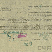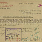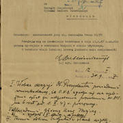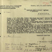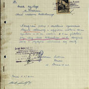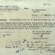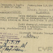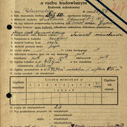 Wniosek adwokata Dominika Pogłodzińskiego, pełnomocnika właściciela i lokatorów zajmujących nowo pobudowane lokale handlowe, o wydanie zaświadczenia potwierdzającego fakt odbudowy posesji od samych fundamentów01.10.1949