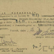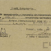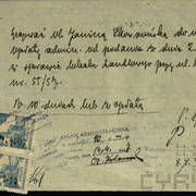 Dowód doręczenia korespondencji dotyczącej pozwolenia na montaż gabloty reklamowej zakładu fotograficznego Mariana Ludowicza na fasadzie budynku nr 57 przy ul. Marszałka Rokossowskiego25.02.1950