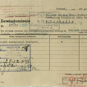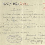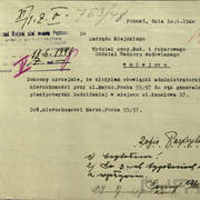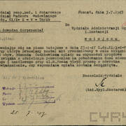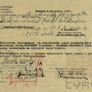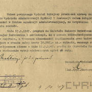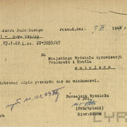 Wezwanie Janiny Skowrońskiej do udzielenia informacji o pracach remontowych dotyczących lokalu handlowego wydzielonego z budynku nr 55/57 przy ul. Marszałka Focha i wynajętego prawdopodobnie od właściciela budynku majora Edmunda Dutkiewicza18.04.1947