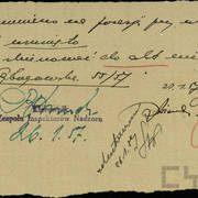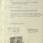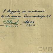 Potwierdzenie odbioru na odwrociu wniosku o zezwolenie na montaż napisu reklamowego "Model" na fasadzie budynku nr 57 przy ul. Marszałka Rokossowskiego02.03.1949–18.03.1949