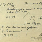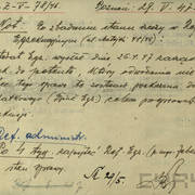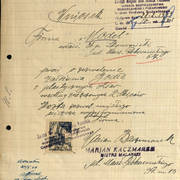 Notatki na odwrociu decyzji Prezydium Miejskiej Rady Narodowej o niewyrażeniu zgody na prowadzenie warsztatu cukierniczego Jana Rutkowskiego w budynku nr 55 przy ul. Konstantego Rokossowskiego18.06.1951