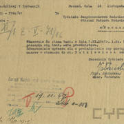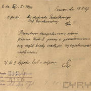 Wezwanie Stanisława Krzymańskiego do udzielenia informacji o pracach remontowych dotyczących lokalu handlowego wydzielonego z budynku nr 55/57 przy ul. Marszałka Focha i wynajętego prawdopodobnie od właściciela budynku mjra E. Dutkiewicza18.04.1947