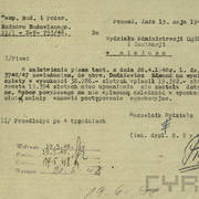 Dokumentacja dotycząca postępowania egzekucyjnego przeciwko majorowi Edmundowi Dutkiewiczowi w związku ze ściągnięciem opłaty za pozwolenie na budowę domu mieszkalnego i lokalu handlowego przy ul. Marszałka Focha 55/5729.05.1947