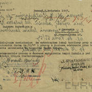 Wezwanie J. Piątkiewicza do udzielenia informacji o pracach remontowych dotyczących lokalu handlowego wydzielonego z budynku nr 55/57 przy ul. Marszałka Focha i wynajętego prawdopodobnie od właściciela budynku majora Edmunda Dutkiewicza18.04.1947