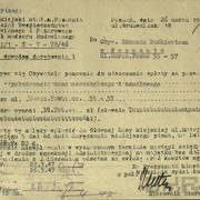 Dokumentacja dotycząca postępowania egzekucyjnego przeciwko majorowi Edmundowi Dutkiewiczowi w związku ze ściągnięciem opłaty za pozwolenie na budowę domu mieszkalnego i lokalu handlowego przy ul. Konstantego Rokossowskiego 55/5712.03.1949