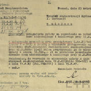 Dokumentacja dotycząca postępowania egzekucyjnego przeciwko majorowi Edmundowi Dutkiewiczowi w związku ze ściągnięciem opłaty za pozwolenie na budowę domu mieszkalnego i lokalu handlowego przy ul. Marszałka Focha 55/5723.04.1947