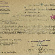 Dokumentacja dotycząca postępowania egzekucyjnego przeciwko majorowi Edmundowi Dutkiewiczowi w związku ze ściągnięciem opłaty za pozwolenie na budowę domu mieszkalnego i lokalu handlowego przy ul. Marszałka Focha 55/5704.10.1947
