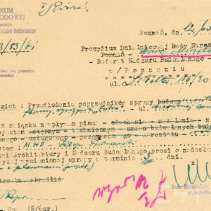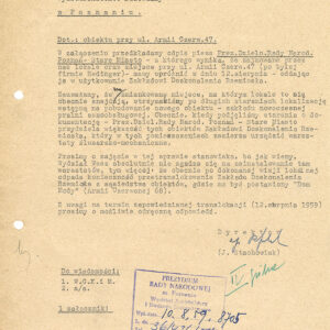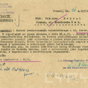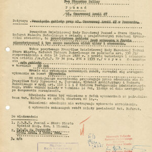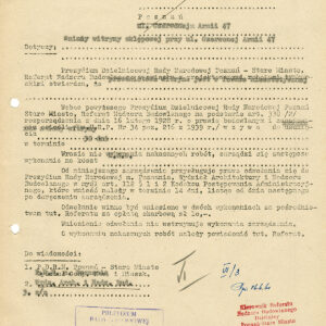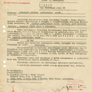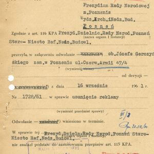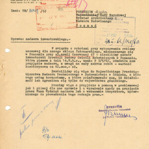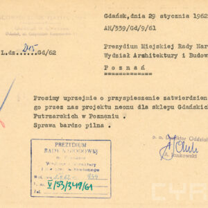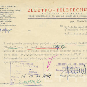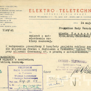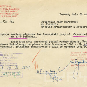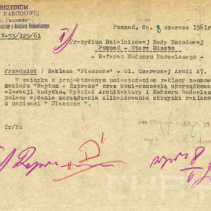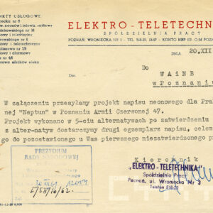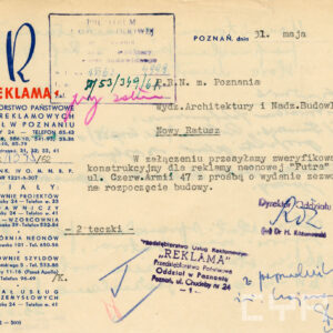 Dokumentacja budowy dwóch neonów, pralni i sklepu futrzarskiego, na elewacji budynku mieszkalnego z użytkowym przyziemiem przy ul. Czerwonej Armii 47 (dzisiaj ul. Święty Marcin) obejmuje nie tylko projekty, wizualizacje i korespondencję urzędową dotyczącą pozwoleń na ich budowę obu reklam, ale także pisma urzędowe związaną z zagospodarowaniem podwórza tej posesji zabudowanego w latach 60. XX wieku różnymi budynkami warsztatowymi i gospodarczymi. Dla samoobsługowej pralni chemicznej zaplanowano budowę nowego lokalu podwórzowego postawionego w miejscu wyburzonych budynków gospodarczych. Z tego powodu nie wyrażono zgody na budowę garaży na tym terenie. Neon pralni miał się znajdować nad bramą wjazdową na posesję. Początkowo prócz neonu na elewacji planowano także umieszczenie reklamy na wysięgniku z wizerunkiem Neptuna, ale zakład dość szybko z tego pomysłu zrezygnował. W budynku frontowym planowano otwarcie sklepu z futrami. Projekt prostego neonu z napisem „Futra” miał się znajdować nad witryną.