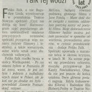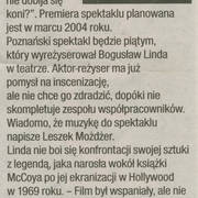 Informacja prasowa o zmianie reżysera spektaklu "Czyż nie dobija się koni?" Horacego McCoy'a w Teatrze Nowym, Bogusława Lindę zastąpił Feliks Falk31.01.2004–01.02.2004