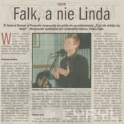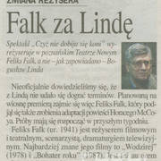 Informacja prasowa o zmianie reżysera spektaklu "Czyż nie dobija się koni?" Horacego McCoy'a w Teatrze Nowym, Bogusława Lindę zastąpił Feliks Falk14.02.2004–15.02.2004