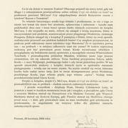 Pismo Janusza Wiśniewskiego, dyrektora Teatru Nowego, do członków stowarzyszenia "Loża Patronów Teatru Nowego" informujące o przyczynach zmian w pracach nad adaptacją "Czyż nie dobija się koni" Horacego McCoy'a28.04.2004