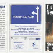 Ulotka promująca spektakl "Opera kozła" wystawiony w ramach przeglądu teatralnego "Nowa Europa. Polska–Łotwa–Estonia" zorganizowanego w Mülheim an der Ruhr w dniach 27 maja - 4 czerwca 2005 roku27.05.2005–04.06.2005