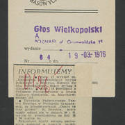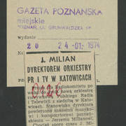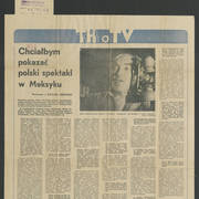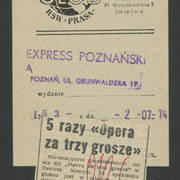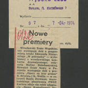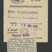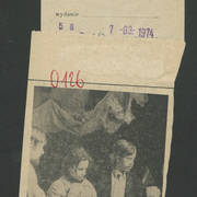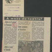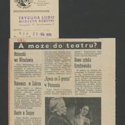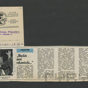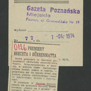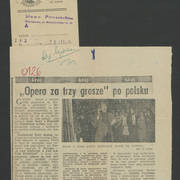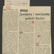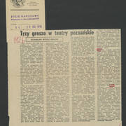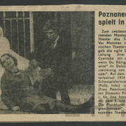 Zdjęcie i krótka notka w gazecie niemieckiej o gościnnych występach Teatru Nowego w Poznaniu z przedstawieniem Bertolta Brechta "Opera za trzy grosze" w Kleist–Theater we Frankfurcie n. Odrą1974