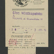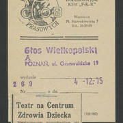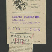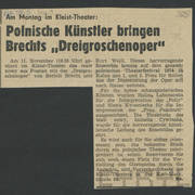 Notatka w gazecie niemieckiej o gościnnych występach Teatru Nowego w Poznaniu z przedstawieniem Bertolta Brechta "Opera za trzy grosze" w Kleist–Theater we Frankfurcie n. Odrą1974