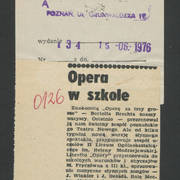 Informacja prasowa o spektaklu "Opera za trzy grosze" według sztuki Bertolta Brechta przygotowanym przez uczniów II Liceum Ogólnokształcącego w Poznaniu15.06.1976