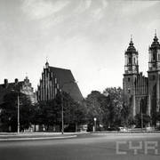 Centralnym i symbolicznym zarazem miejscem na wyspie jest bazylika archikatedralna św. św. Piotra i Pawła z piętnastowiecznym portalem głównym i gotyckim oknem z okazałym maswerkiem. Poznańska katedra jest jednym z najstarszych kościołów w Polsce wzniesionym w ostatniej ćwierci X wieku lub, jak sądzą niektórzy badacze, na początku XI wieku, później wielokrotnie rujnowanym i odbudowywanym, po zniszczeniach w 1945 roku zregotyzowanym. Po zachodniej stronie katedry stoi konsekrowany w 1448 roku kościół Najświętszej Marii Panny, sąsiaduje z nim psałteria z początku XVI wieku z efektownymi, schodkowymi szczytami. Budynek psałterii najpierw służył kolegium dwunastu psałterzystów, którzy przez całą dobę na zmianę śpiewali w katedrze psalmy, a potem mieszkała w nim służba katedralna. Zabudowę Ostrowa Tumskiego uzupełniają liczne kanonie, niektóre o bardzo starym rodowodzie.